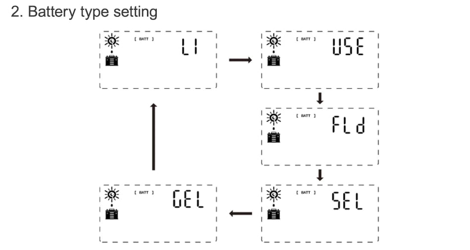 - Suitable for battery types of sealed Lead acid, Vented gel, and Lithium battery